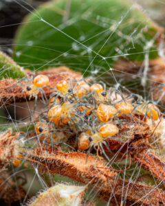 Durante un recorrido reciente en Álamos, Sonora, encontré a una hembra adulta cuidando su ovisaco: una esfera sedosa donde protege decenas de huevos. Esta especie no solo deposita los huevos y se marcha; por el contrario, la hembra permanece cerca, vigila, defiende el saco, asegurándose de que la próxima generación tenga la mejor oportunidad de sobrevivir.
