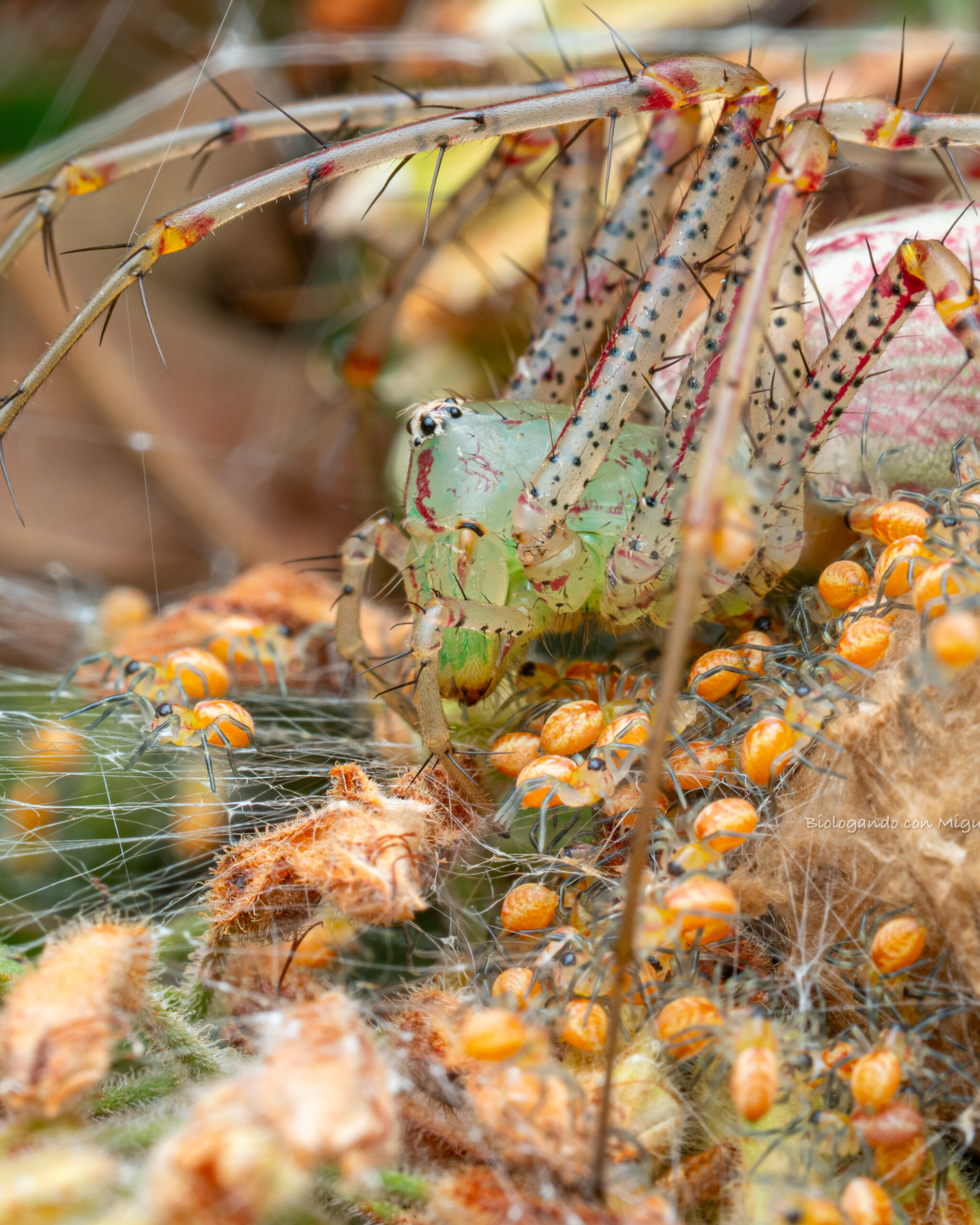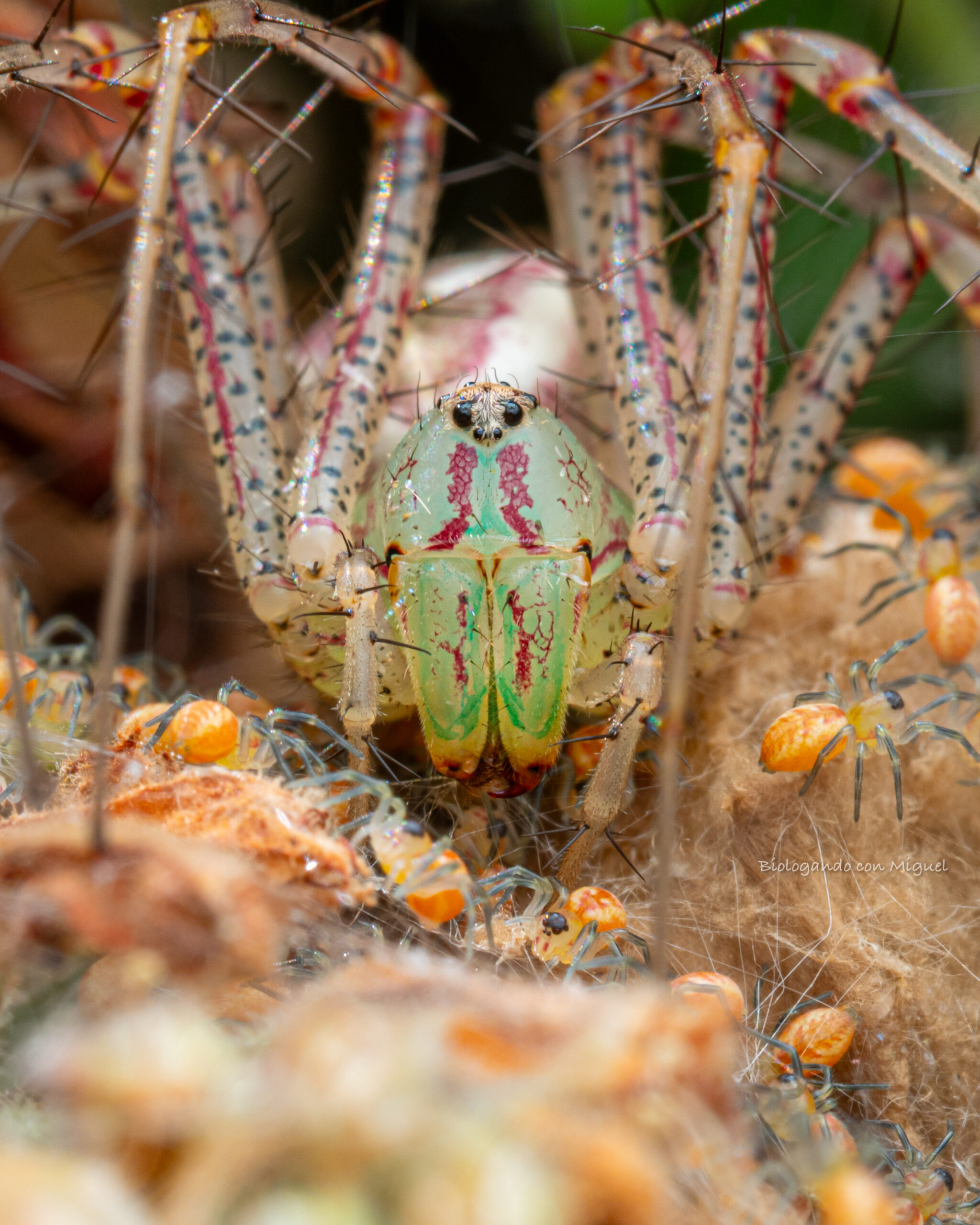 🕷️ La Araña Lince Verde y el secreto de su maternidad en Álamos, Sonora